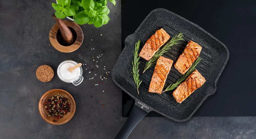 Nie musisz czekać na sezon, aby cieszyć się smakiem grillowanych mięs, ryb i warzyw. Patelnia grillowa Zwieger Obsidian pozwoli ci przenieść klimat letniego grilla do własnej kuchni – i to w zdrowej, beztłuszczowej wersji.